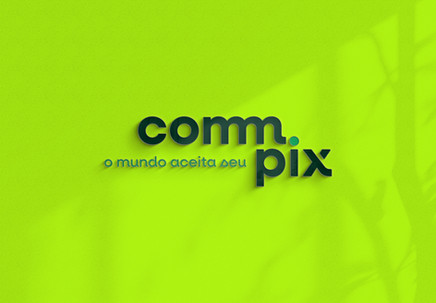 A tipografia é amigável, ousada e contemporânea. A pontuação entre "comm" e "pix" representa mais do que uma divisão: ela sugere fluxo, continuidade e transação, elementos essenciais ao universo financeiro.